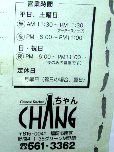 【店名】チャイニーズキッチン ちゃん(CHANG) 公式HP