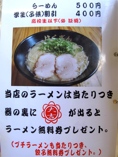 1. 替玉2玉まで無料のらーめん&らーちゃん@ラーメン空間はくざん [ 博多女のB級グルメ節。 ] 2011年04月09日 10:44
