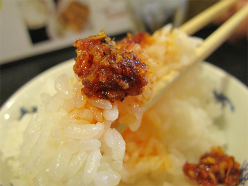 卓上の食べるラー油で食べてもいいし、