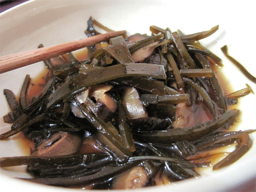 うどんが来るまで、卓上の出汁昆布の煮物を頂きます。