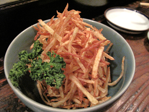 マッチ棒状に細切りしたじゃがいもを揚げて、