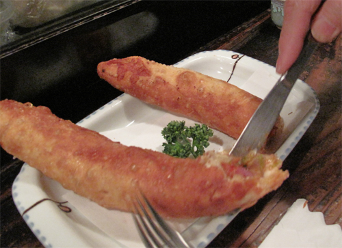 トマトソースやチーズと共に生地で包んで油で揚げたもの。