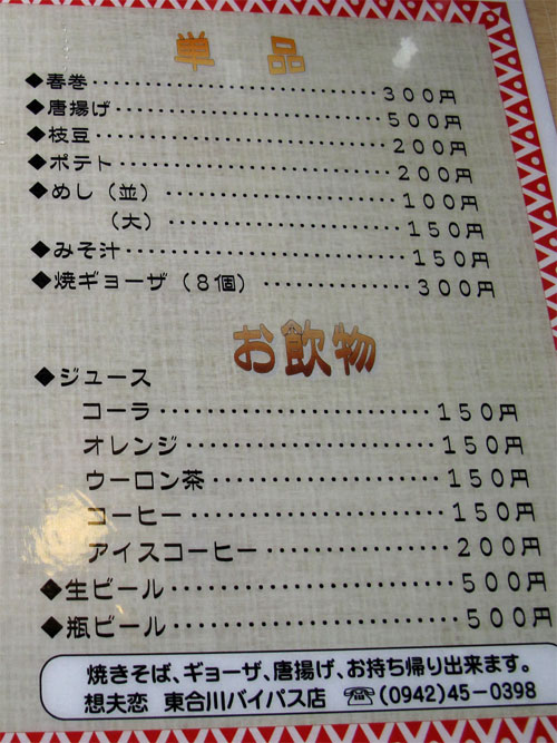 関連記事:焼きそば専門店『想夫恋』@福岡・住吉店