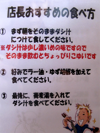 つけ蕎麦の食べ方指南書です。