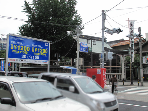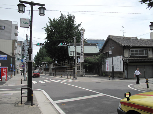 斜向かい(画像右奥)は櫛田神社の正門です。