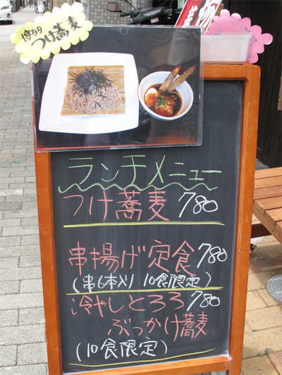 『串揚げ・つけ蕎麦』と大きく描かれたスクリーンが目印です。