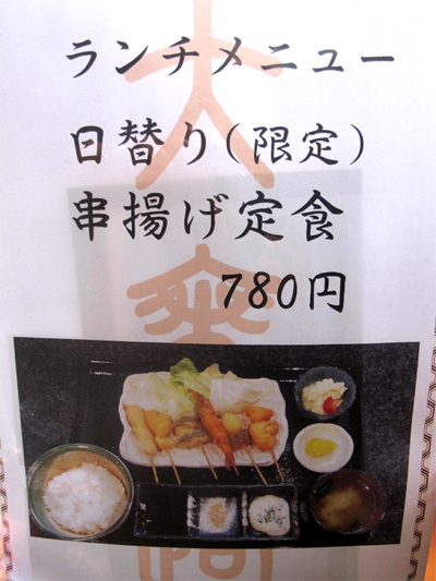 ランチの串揚げの内容は日替わりだそうです。