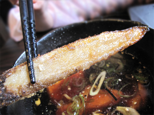 揚げ立て熱々で、外側カリッの揚げごぼう。