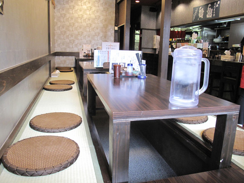 壁に沿って長い小上がりは、掘り炬燵席になってます。