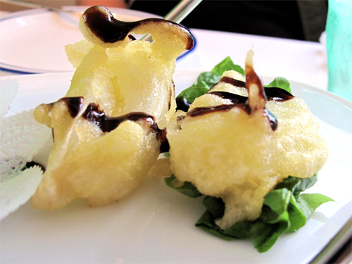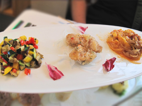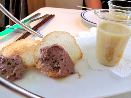 レバーペーストや玉蜀黍のスープ、玉葱のフリット。