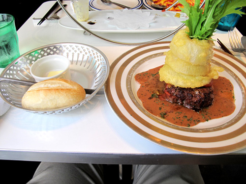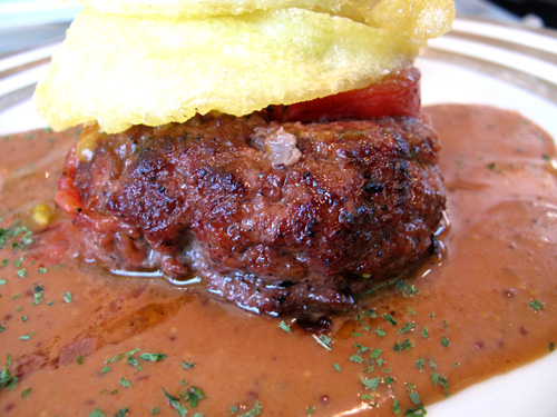ハンバーグの上に、玉葱の衣揚げが乗ってます。
