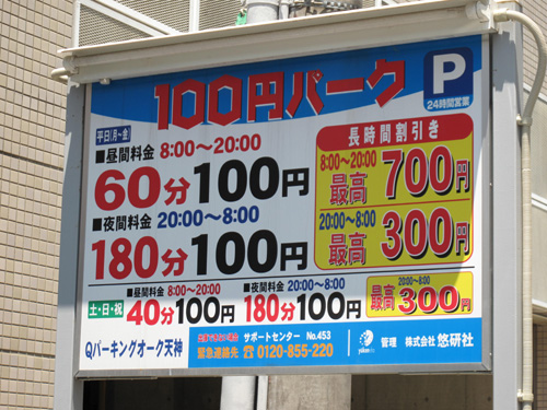 平日の昼間は60分100円です。