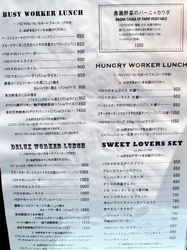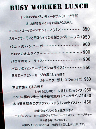 ランチメニューの一部です。