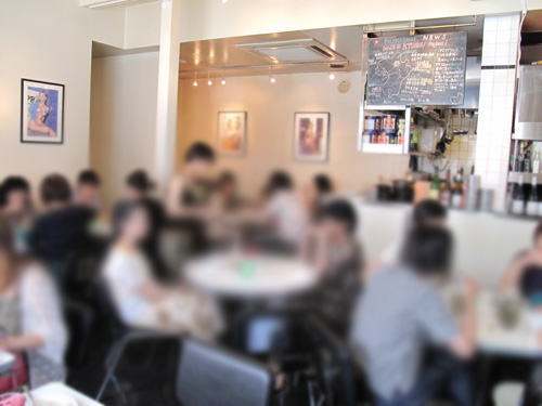テラス席などはなく、テーブル間は狭いので、