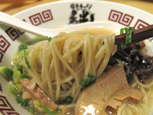 スープは、コクがあるのに脂っこくないマイルド豚骨です。