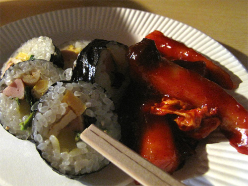 キムパプ(韓国のり巻)とトッポギです。