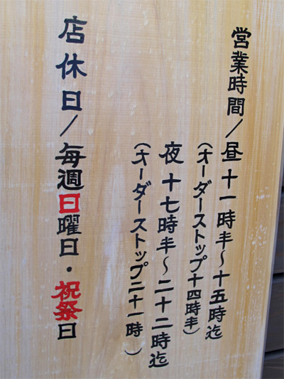 お店の営業時間と定休日です。