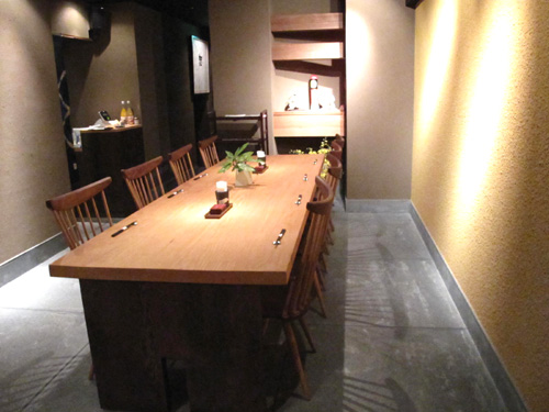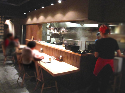 木の家具や和の調度品、厨房から沸き立つ湯気がモダンな空間に温かみを加えてます。