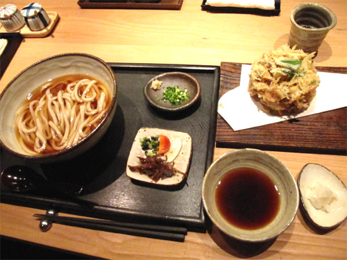 アタシが注文した、冷冷素うどん500円と野菜のかき揚げ500円。
