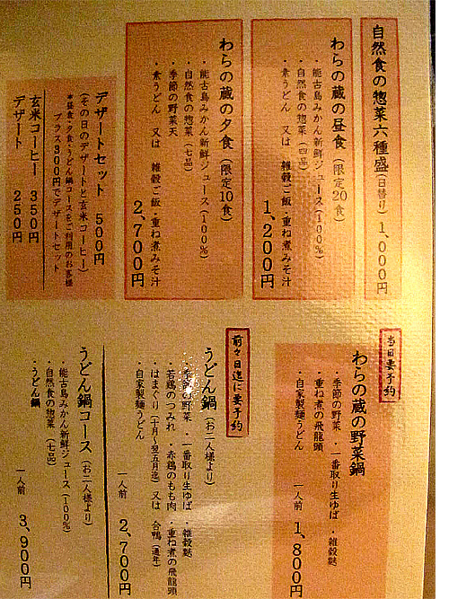 【店名】饂飩と自然食料理 わらの蔵 公式HP