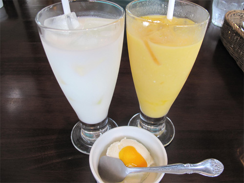 種類色々の紅茶(セイロンティーかな♪)・ラッシー・マンゴーラッシー。