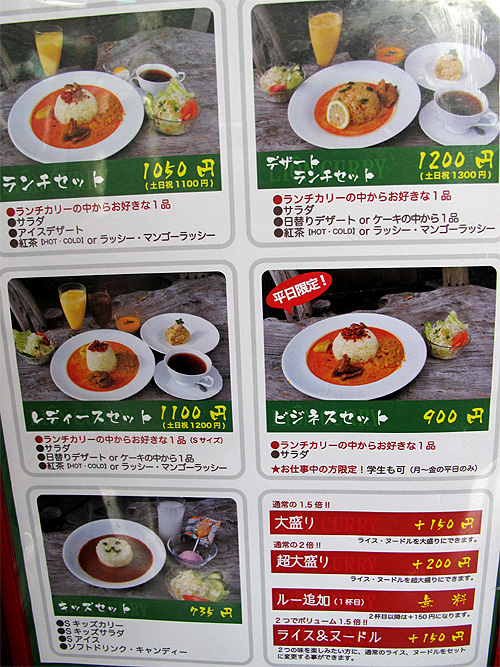 平日限定のビジネスランチ(カリーとサラダ)900円やお子様セットもあります。