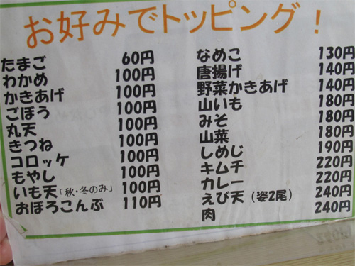 トッピングのメニュー。