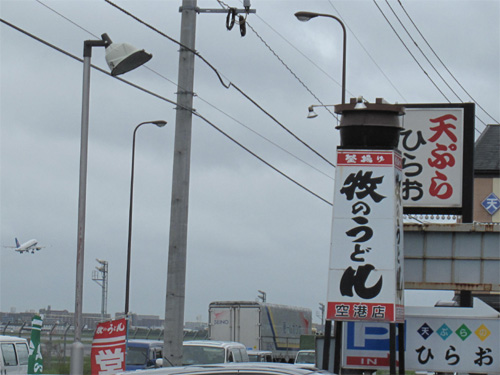 福岡空港の滑走路沿い、45号線にあるうどん店。