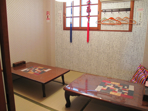 4人掛けのテーブルが2つで10人弱位の宴会が可能です。