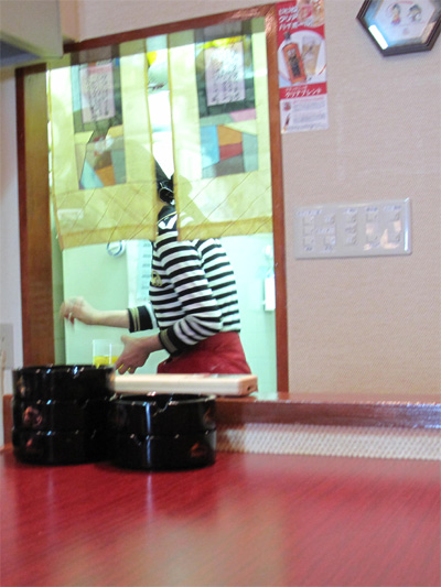 その間、厨房では小柄で華奢なママさんがチゲを作ってます。