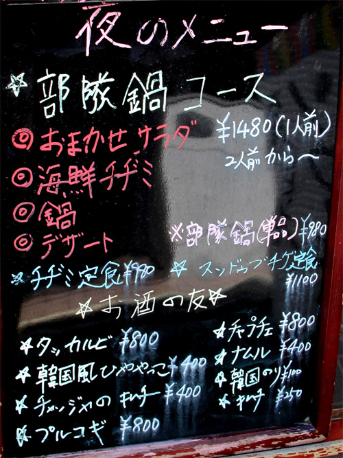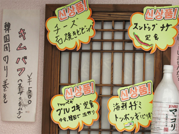 夜は韓国家庭料理のお店になり、韓国風鍋や焼肉もあります。
