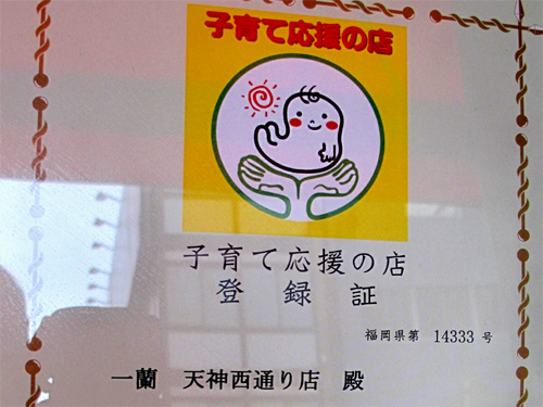 福岡県お墨付きの『子育て応援の店 登録証』が掲げてありました。