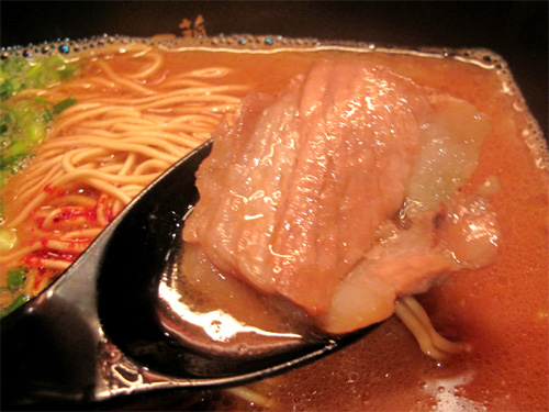 焼豚の仕込みダレを豚骨ラーメン用の元ダレに加えたものらしい。