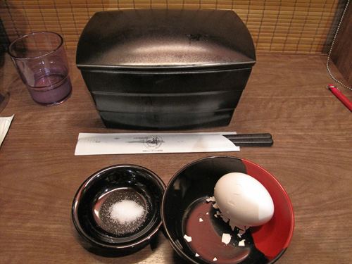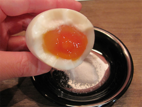最初に来たのは、半熟塩ゆでたまご100円。
