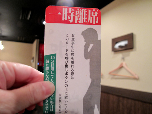15分以上席を離れる場合はご申告ください。