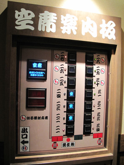 空いてる席が一目で分かる空席案内板。
