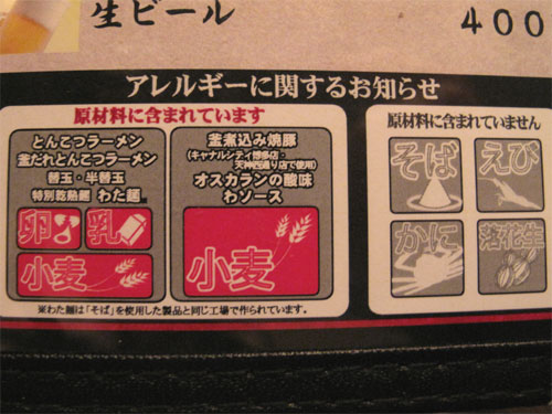 アレルギー表示。
