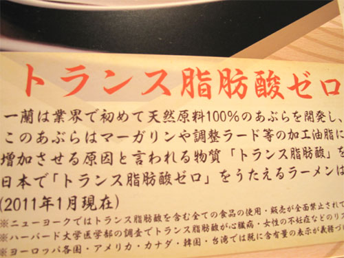 一蘭のラーメンは、『トランス脂肪酸』がゼロらしい。