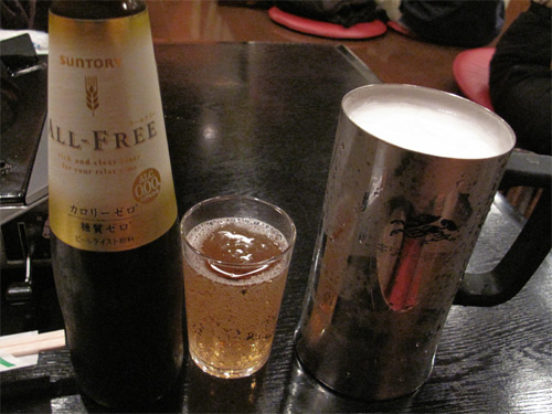 生ビールとノンアルコールビール。