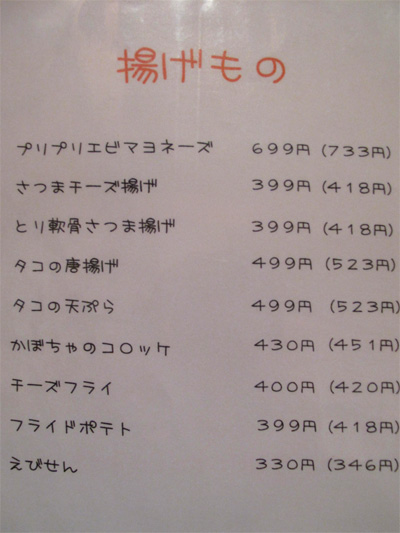 揚げ物メニュー。