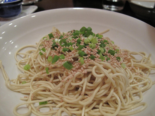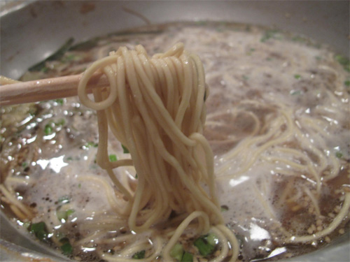 ゴマとネギがかかったラーメン玉を投入。