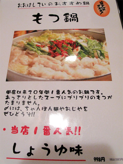 1. 質・量共に大満足のもつ鍋♪@おおはしてい・大橋 [ 博多女のB級グルメ節。 ] 2011年12月15日 11:08