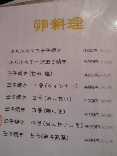 卵料理メニュー。