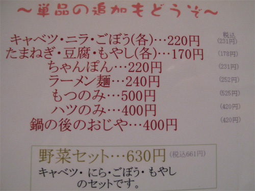 もつがとても美味しかったので、もつ単品を追加しました。