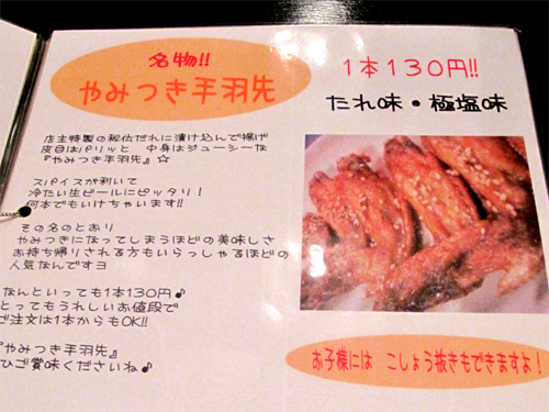 『やみつき手羽先』です。1本130円。