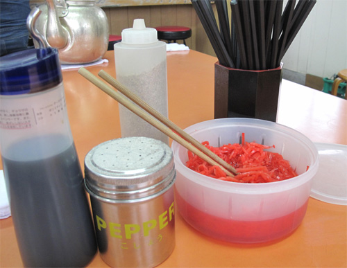 ラーメン用はコショウ・ゴマ・紅しょうが。