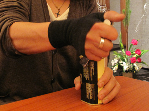 缶切りで上下共開けて、お皿にスルっと取り出すそうです。