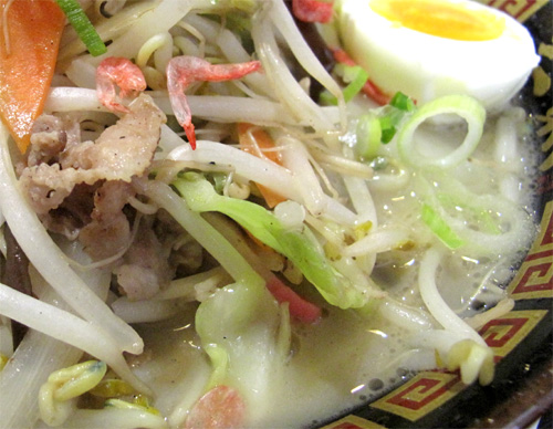 分かりやすく言えば、肉野菜炒めのせ豚骨ラーメンってトコでしょうか。