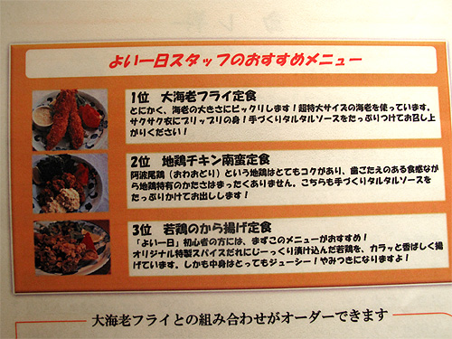 1. 人気の大海老フライ定食&地鶏チキン南蛮定食♪@キッチンよい一日 [ 博多女のB級グルメ節。 ] 2012年03月10日 01:01