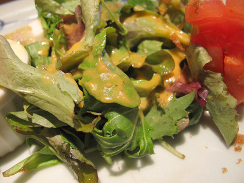 添えてあるサラダは食感が柔らかいベビーリーフ。